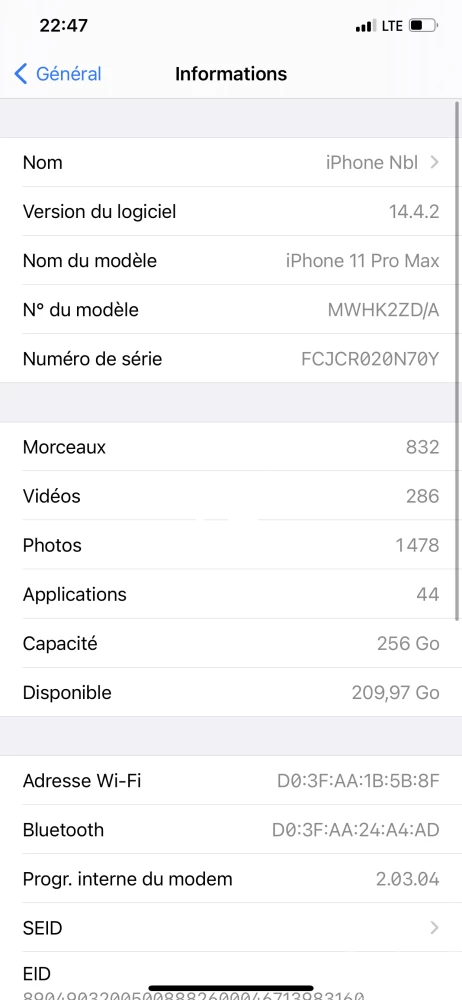 11pro max 256giga état de la batterie 95% truetone fonctionne, Face ID fonction display original tout est okay 👌