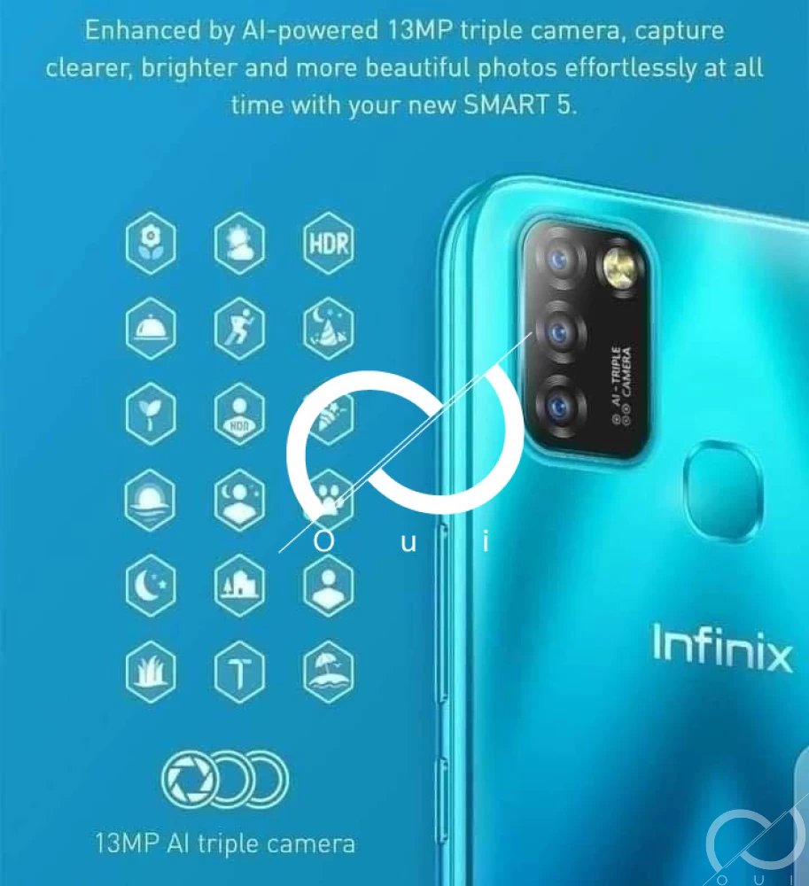 OUVERT TOUS LES JOURS/DE DIMSNCHE À DIMANCHE/ 7jrs/7, 8:30' A 20:00'👈 👉👉 PROMOTION D'INFINIX SMART 5-/32GB+2GB/5000Mah/3G à 110$ 🤳🤳 +243840672157 Livraison à domicile/avec guarantie d'une année et un mois. Addresse : Addresse : 24 Novembre/ Ngele, réf : Academie de Beaux-Arts. Juste à côté du bar "Magic" : nom du shop c'est MUVA/prière de voire la photo de notre Shop👇👇👇👇👇👇👇👇👇 👉👉INFINIX SMART 5 (32GB+32GB), ANDROID 10, 5000 mAh *FICHE TECHNIQUE Écran* 👉👉Technologie IPS LCD 👉👉Écran tactile oui, capacitif Couleurs 16M 👉👉Taille écran 6.6" pouces Zone d'écran 105.2 cm2 👉👉Format d'écran 20:9 (Hauteur:largeur) Ratio écran / corps 86.6% 👉👉Résolution d'écran 720 x 1600 px 👉👉Densité des pixels 266 PPI *Caméra* 👉👉Caméra arrière, basique 13 MP, Trois caméras 👉👉Spécifications -13 MP -QVGA -QVGA 👉👉Fonctions Triple-LED flash 👉👉Vidéo 1080p@30fps 👉👉Caméra frontale, selfie 8 MP, Une caméra Caractéristiques -8 MP 👉👉Fonctions Dual-LED flash 👉👉Vidéo 1080p@30fps Performance et Hardware 👉👉Système d'exploitation (OS) Android 10 (Go edition) 👉👉Processeur CPU - 8-core 1.8 GHz Mémoire externe 👉👉microSDXC (emplacement dédié) 👉👉Mémoire interne 32GB 2GB RAM, 64GB 3GB RAM *Caractéristiques* 👉👉Date de sortie 2020, aout 13 👉👉Dimensions (HxLxP) 165.4 Х 73.4 Х 8.8 mm Poids 0 gr. 👉👉Coque Glass front, panneau plastique arrière, cadre en plastique Couleurs Black, Blue, Green 👉👉Batterie 5000 mAh, non amovible, Li-Po *Communication et de connectivité* 👉👉Carte SIM Dual SIM (Nano-SIM, mode double veille) 👉👉Réseaux GSM / HSPA / LTE 👉👉Afficher toutes les fréquences du réseau: Vitesse HSPA 21.1/5.76 👉👉Mbps, LTE Cat4 👉👉150/50 Mbps 👉👉GPRS Oui 👉👉Edge Oui 👉👉Wi-Fi Wi-Fi 802.11 a/b/g/n/ac, dual-band, Wi-Fi Direct, hotspot 👉👉GPS Oui, avec A-GPS NFC Non 👉👉USB microUSB 2.0 Bluetooth 5.0, A2DP, LE